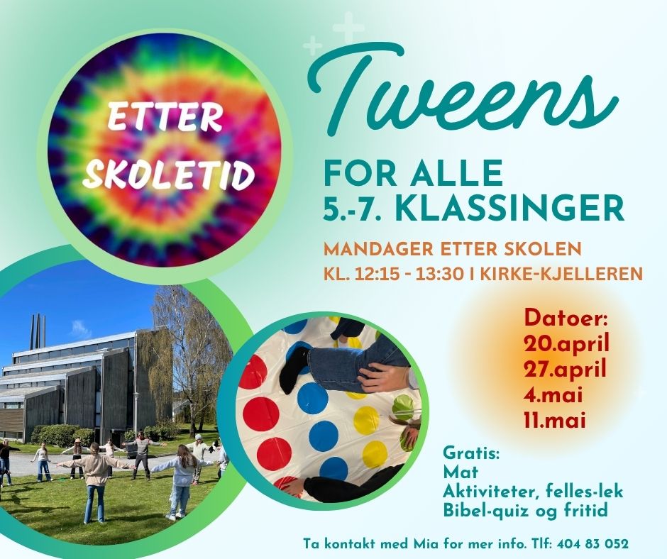 Alle 5. -7. klassinger er velkomne til kjekke samlinger ETTER SKOLETID. Oppstart mandag 20.april kl.12:15.